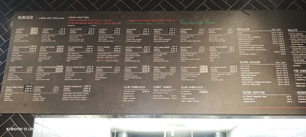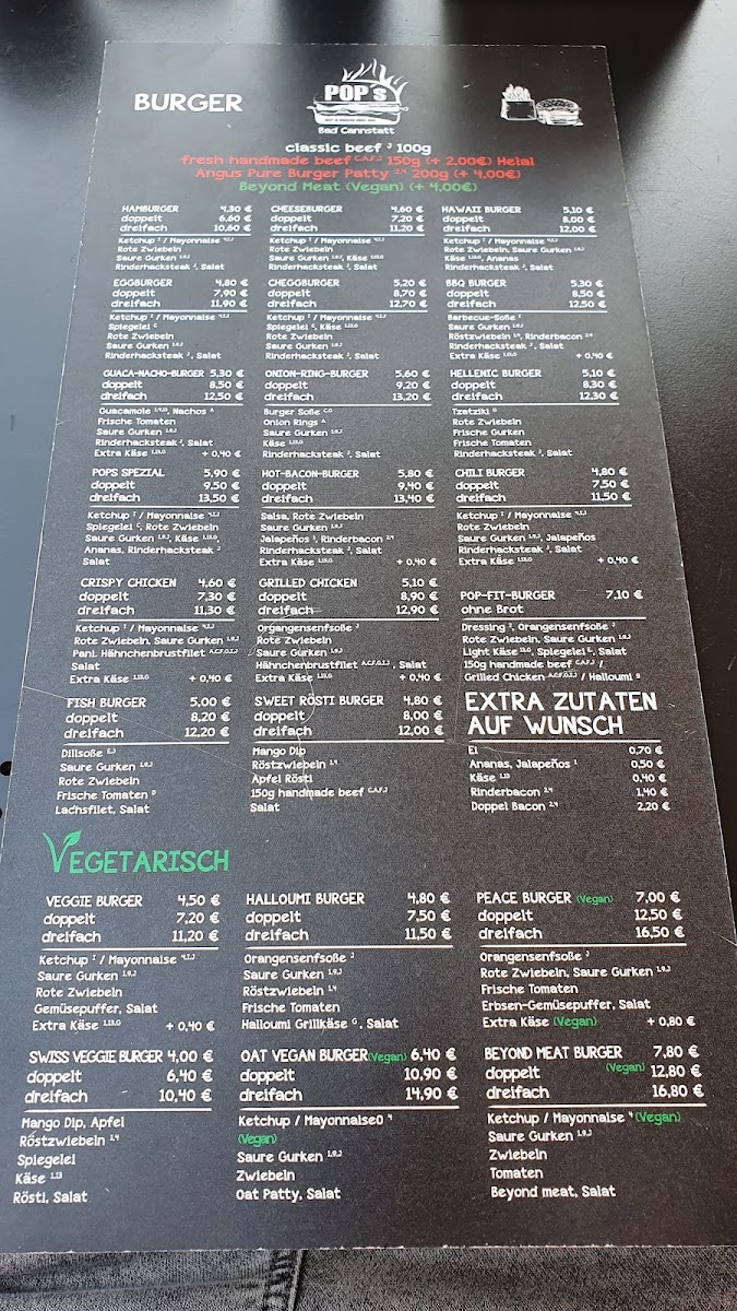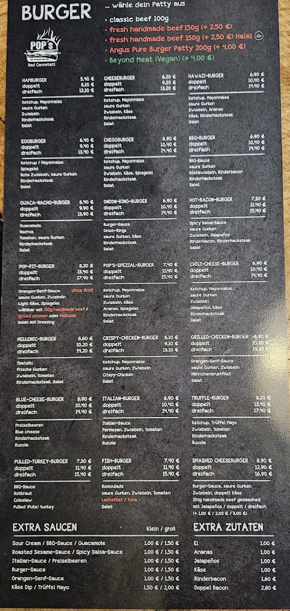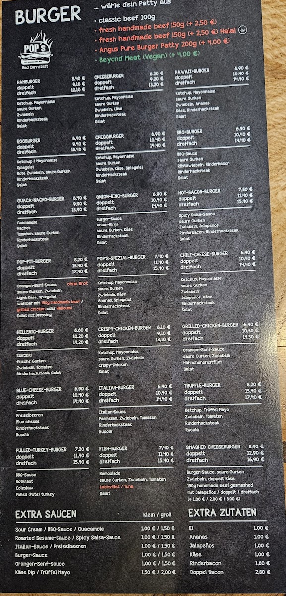 Welcome to Pops Burger Stuttgart, a must-visit destination for burger enthusiasts in the heart of Stuttgart. Located on Wildunger Str. 1 - 4, this vibrant eatery is renowned for its mouthwatering halal burgers, including the crowd-favorite crispy chicken burger. With a focus on flavor, customers rave about the moist patties and perfectly toasted buns that make each bite memorable.